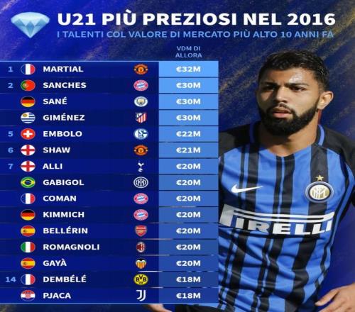 德转列2016年世界足坛U21身价前15: