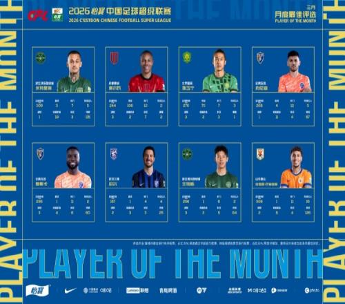 体育播报4月22日宣 中超官方公布3月最佳球员候选名单,8位候选人是米特里策、韦林顿、张玉宁、约尼查、奥斯卡、绍尔、王钰栋以及克雷桑。